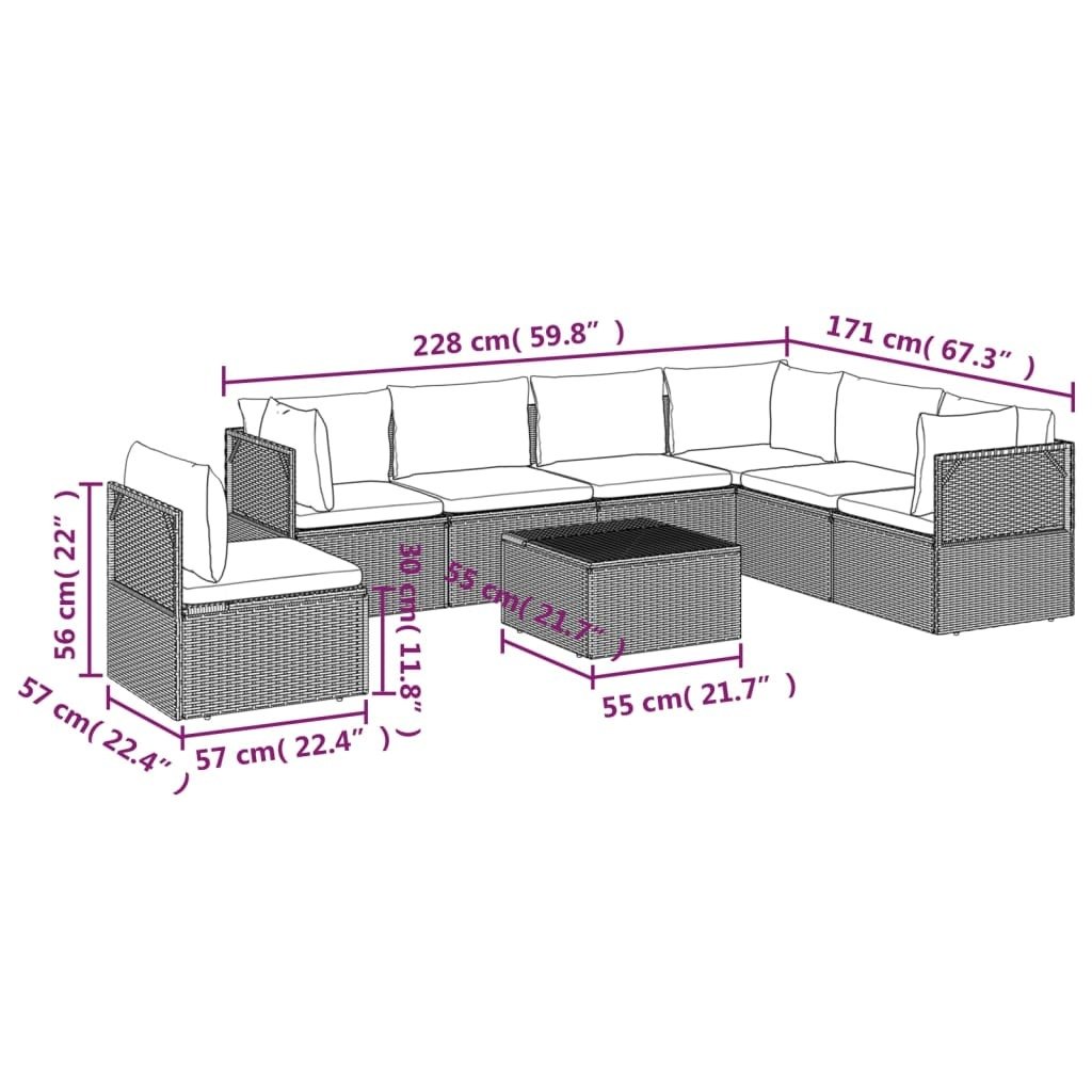 8 Piece Patio Lounge Set with Cushions Gray Poly Rattan