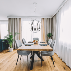 Lalia Home 3-Light 18" Adjustable Industrial Globe Hanging Metal and Clear Glass Ceiling Pendant (Color: Chrome)