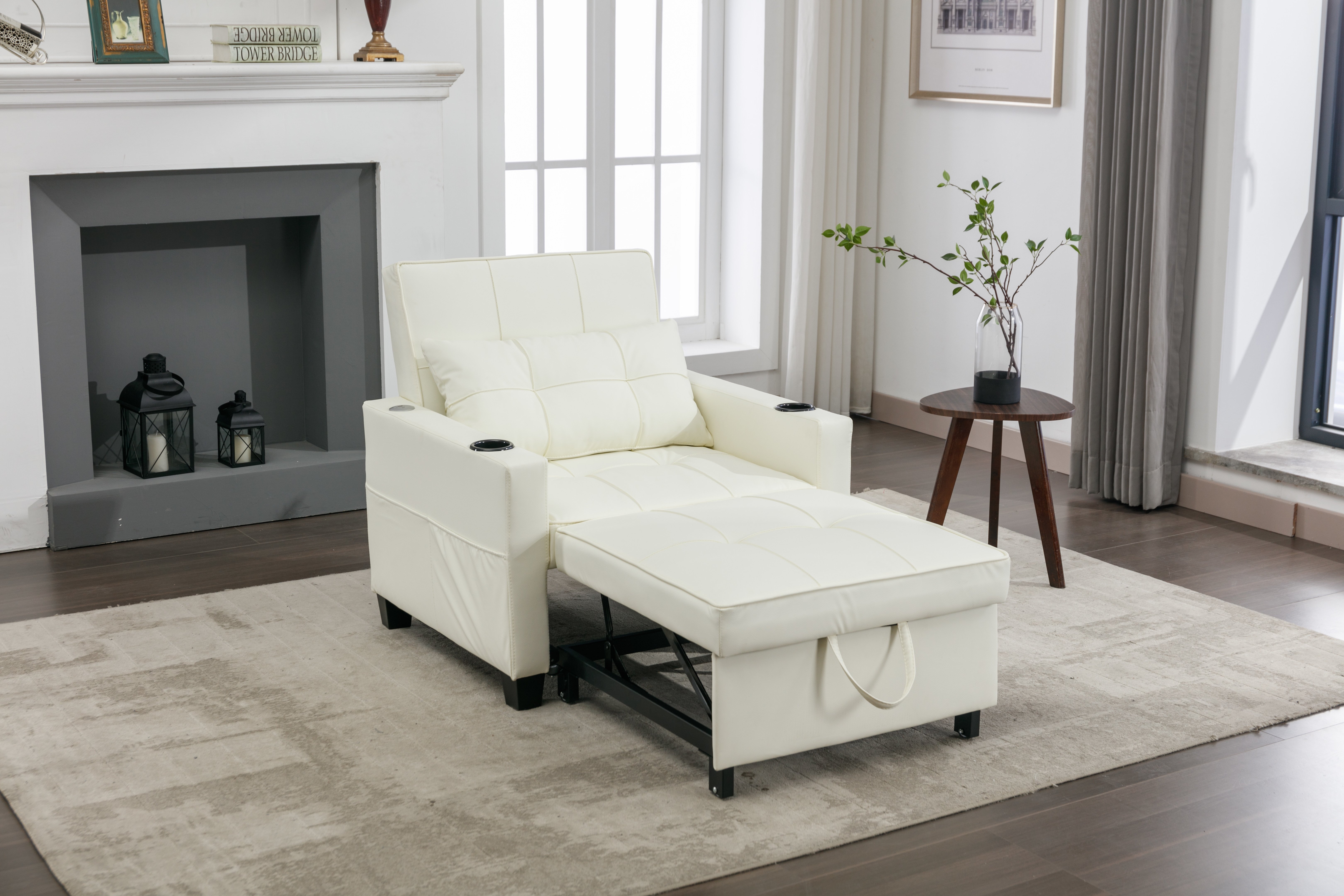 USB AND CUP HOLDERS: There are 1 USB charging port and 1 Tapy C interface on the left armrest of the sofa for various charging cables, which can provide continuous power supply for your phone. There is a convenient cup holders design on the seat back to place drinks and cups. There are 4 side pockets and built-in cup holders to meet your daily needs.