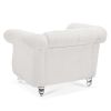 Product Type:SofaProduct size:38.98"W * 32.09"D * 28.35"HSeat Length:22.44"Seat Depth:22.44"Seat Hight:19.29"Cushion thickness:5.91"Leg Hight:4.92"Distance from the Bottom of the sofa to the floor:4.92"Height of Bckrest:12.6"Width of Arm:8.66"Leg Material:BirchInternal Frame Material:Solid Wood + PlywoodInternal Seat Material:Pocket Springs with FoamInternal Backrest Material:FoamMaximum Load Bearing:220 LBSCarton Size:31.9 "W*23.60 "D*23.60 "HN.W.:54LBSG.W.:59.5LBSMaterial:Teddy Velvet Cover+ Foam +Wood Frame +Pocket Springs+Wood LegsAssembly Method:Seat/Arm/Back/Leg KD
