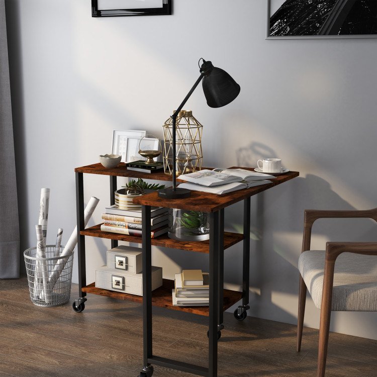 1.360-degree Free Rotating Function: Featuring 360-degree free rotating, the sofa side table can be easily changed into different shapes to meeting your different needs. When extended to 180 degrees, the side table offers spacious displaying space. Besides, 6 swivel wheels (two of which have brakes) make it move more flexible and convenient.