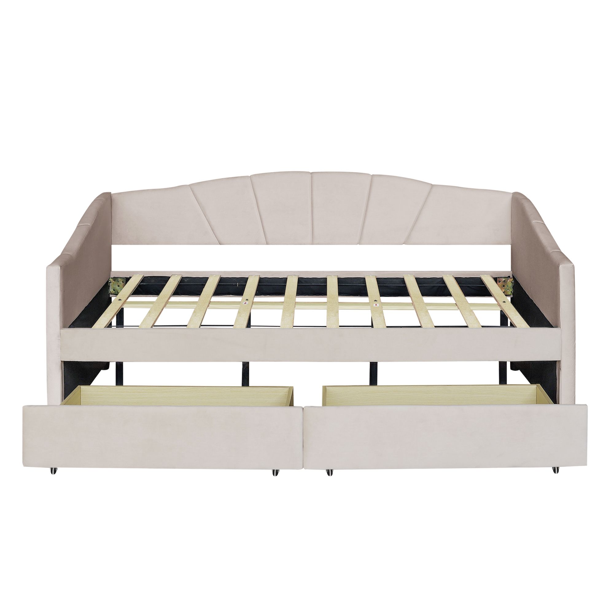 Upholstered daybed Twin Size with Two Drawers and Wood Slat Suppot Upholstered daybed Twin Size with Two Drawers and Wood Slat Suppot Upholstered daybed Twin Size with Two Drawers and Wood Slat Suppot