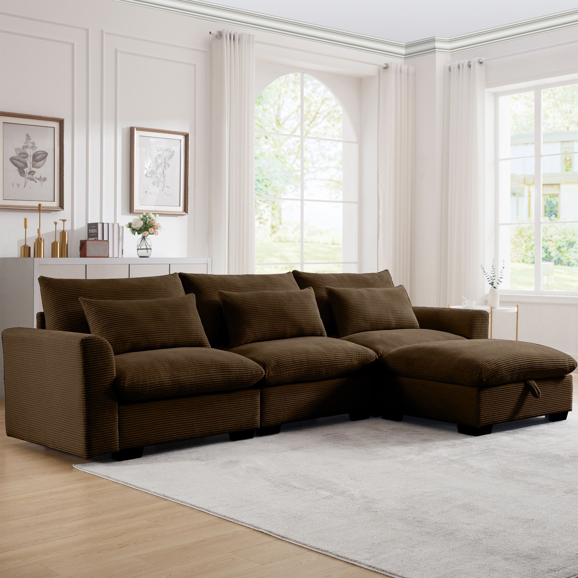 Superior comfort - extended deep seats allows you to sit cozy on the sofa, soft waist pillow to offer excellent support to your waist, ergonomic seat angle eliminating your fatigue of the day and bringing a full sense of security and comfort. Back and seat cushion are upholstered with comfortable high-density foam cushions for ultimate comfort and support.The back cushions and seat cushions are soft and fluffy, and the stripped corduroy fabric gives it a cloud-like wrapping feel.