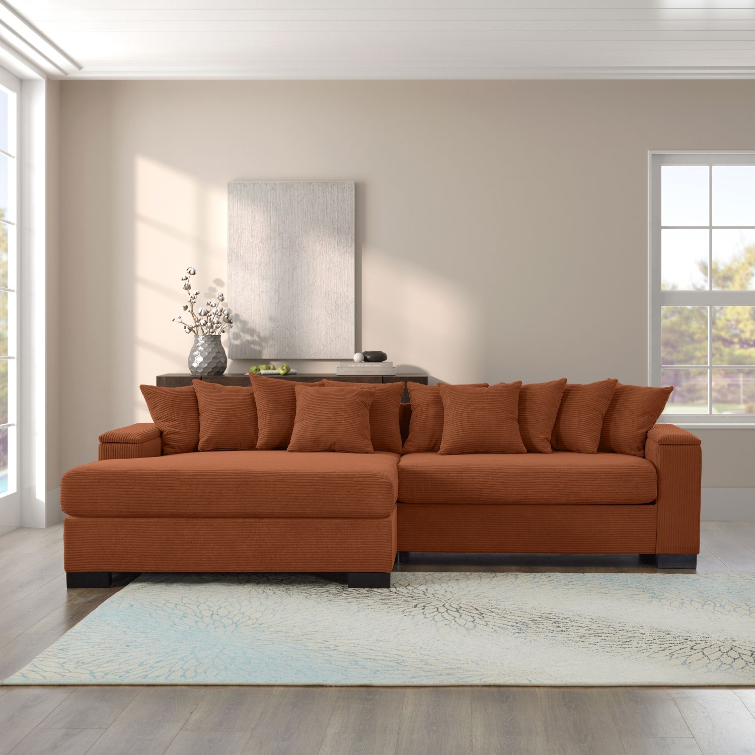 Convertible: The L shape position of the sofa can be convertible to left and right to fit any space layout, and both of the seat cushion and back cushion cover can be removed and washable.