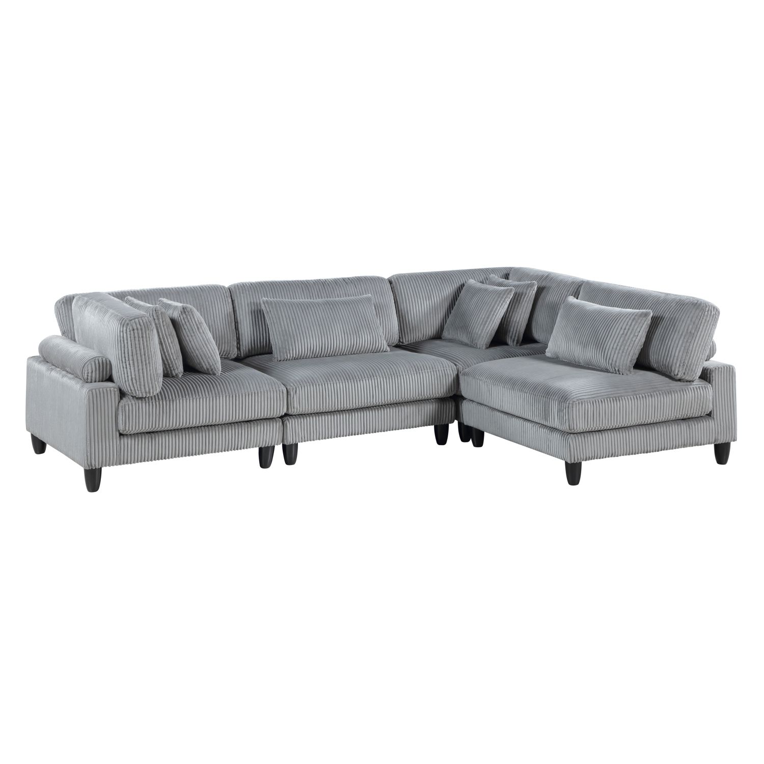 Living Room Furniture 4-Piece Modular Sectional Sofa Set Gray Corduroy Soft Cushion Pillows Solid Wood Legs