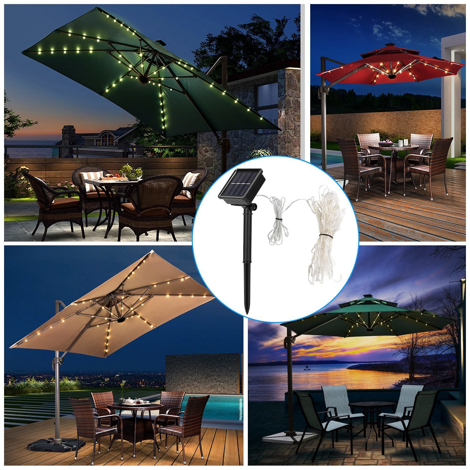 *8 Lighting Modes*:Gorgeous lighting modes includes combination,wave,sequential,fading slowly,slow-glow,chasing,twinkle and steady on. Suitable for decorating umbrella or tents with 8 ribs. Ideal for decorating your patio,garden,deck,backyard,pool,gate,yard,party etc,also can be used as decorative string lights for cafe,bar,Christmas tree and other places.(Note:Umbrella is not included)